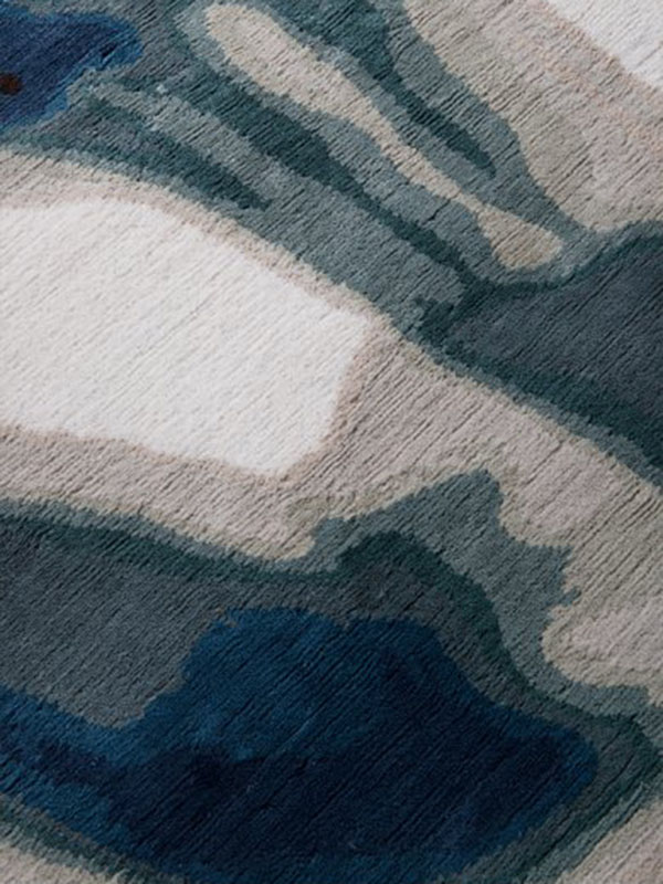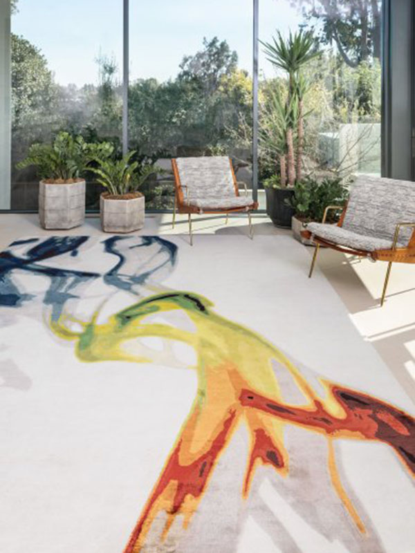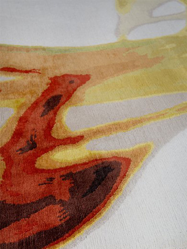 Những làn khói tinh tế được làm sinh động thông qua độ dốc của bảng màu đa dạng gồm đỏ, vàng, xanh lá cây và xanh lam. Những sợi len và lụa mịn mô tả sự chuyển động và sự phấn khích của khói và lửa, chúng kết hợp với nhau để mang lại sự kỳ diệu của các yếu tố tự nhiên vào ngôi nhà.